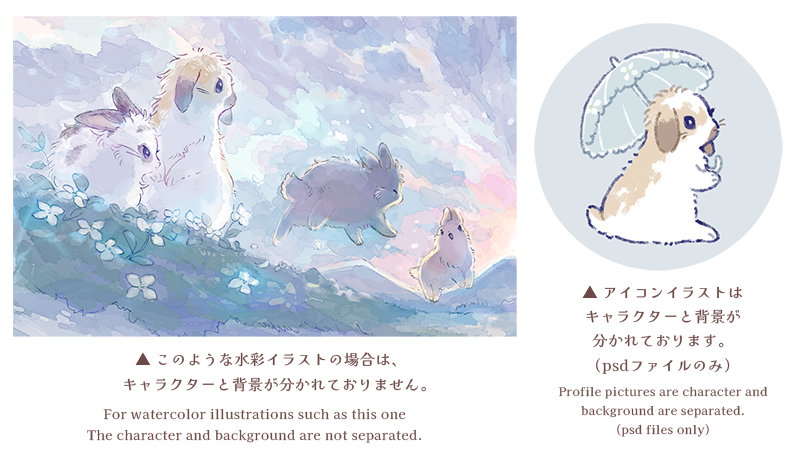 ・水彩調のイラストでキャラクターと背景の線画を分けて欲しい場合は、事前に申し出てください。